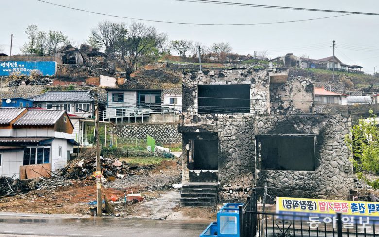 3월 경북 북부를 대형 산불이 휩쓴 지 50일이 다가오지만 이재민들의 정신적 고통(트라우마)은 계속되고 있다. 경북 영덕군 영덕읍 매정리 주민 이영해 씨(66)는 4월부터 수면제를 먹기 시작했다. 눈을 감으면 새카맣게 타버린 집과 3000여 평의 밭, 살림살이들이 떠올라 도무지 잠이 오지 않는다. 동아일보 취재팀이 7일 오후 찾아간 이 씨의 집은 그곳이 집이었는지조차 알아볼 수 없을 정도였다. 부부의 이름이 적힌 문패만이 남아 그곳이 한때 집이었단걸 알려주고 있었다. 이 씨는 “작은 소리에도 깜짝 놀라 일어날 만큼 예민해졌다”고 말했다.