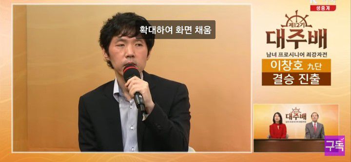 결승 진출을 확정 지은 후 인터뷰를 하고 있는 이창호 9단.(사진 K바둑 캡처)