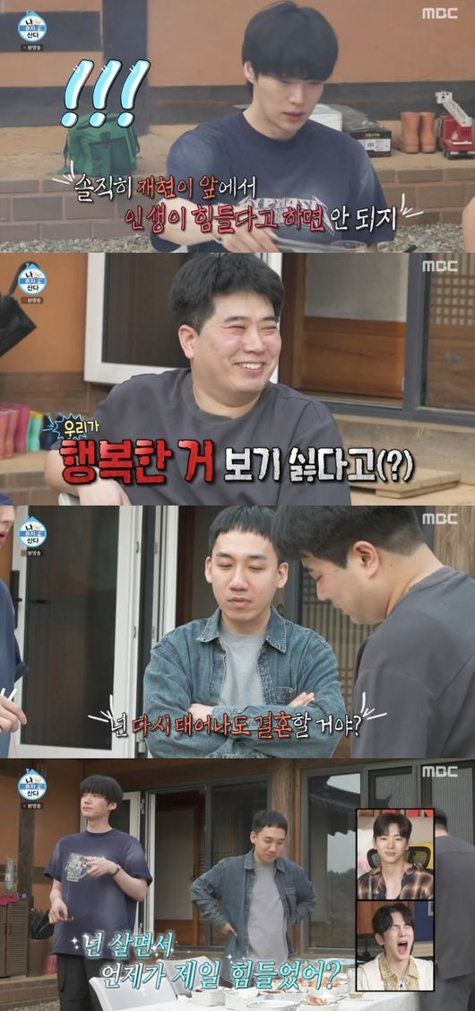 당황한 안재현은 “(배우자) 있을 때 물어봐”라고 반격했다. 이때 또 다른 친구가 “재현이 많이 밝아졌다. 그때보다”라고 하자 친구는 “그 때가 언제를 말하는 거냐”라고 놀렸다. 그러면서 “재현아 넌 살면서 언제가 힘들었어?”라고 쐐기를 박아 웃음을 안겼다.