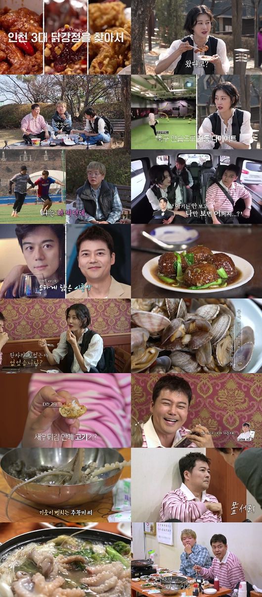 이날 인천에 뜬 전현무는 “인천 특집 아직 끝나지 않았다. 보물 맛집이 많다”고 선포한 뒤, 한 공원으로 향했다. 여기서 ‘먹친구’ 이현이를 만난 전현무-곽튜브는 각자 ‘픽’ 해온 닭강정을 꺼내 맛 평가에 돌입했다. 세 사람은 “이건 카레맛이 나는데?”, “견과류 많이 뿌려서 그런지 맛동산 맛 난다”며 직관적인 맛 표현을 했다. 이 과정에서 이현이는 몸매 관리법이 ‘축구’라고 밝혔는데, 곽튜브는 “축구하니까 살 더 찌던데.. 회비 내면 밥값 포함이라서 끝나고 밥을 꼭 먹는다”고 이견을 드러냈다. 그러자 이현이는 “운동 후 밥이 먹고 싶은 건 운동을 덜한 거다. 나는 11km씩 뛴다”고 강조해 곽튜브를 ‘녹다운’시켰다.
