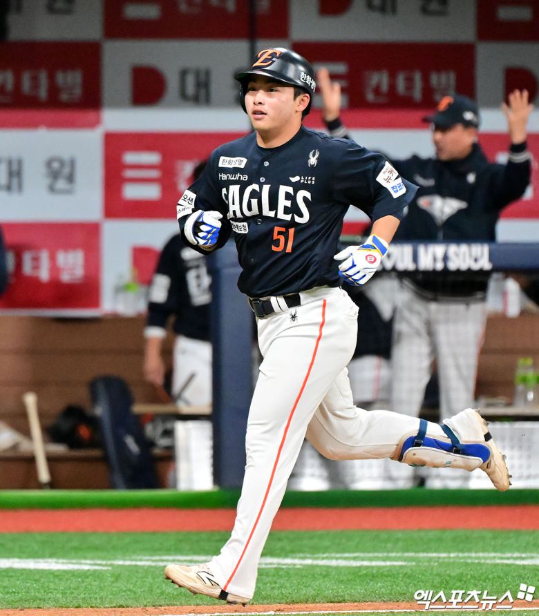 이날 고비 때마다 팀을 위해 타점을 올린 문현빈은 9회 2사 주자 없는 상황에서 키움 주승우에게 우중간 펜스 넘어가는 솔로 홈런을 뽑아내 역전타 주인공이 됐다. 한화는 이어진 2사 2루 찬스에서 채은성의 1타점 3루타와 이상혁의 1타점 2루타가 연속 폭발하면서 7-4를 만들고 전세를 확실히 뒤집었다.