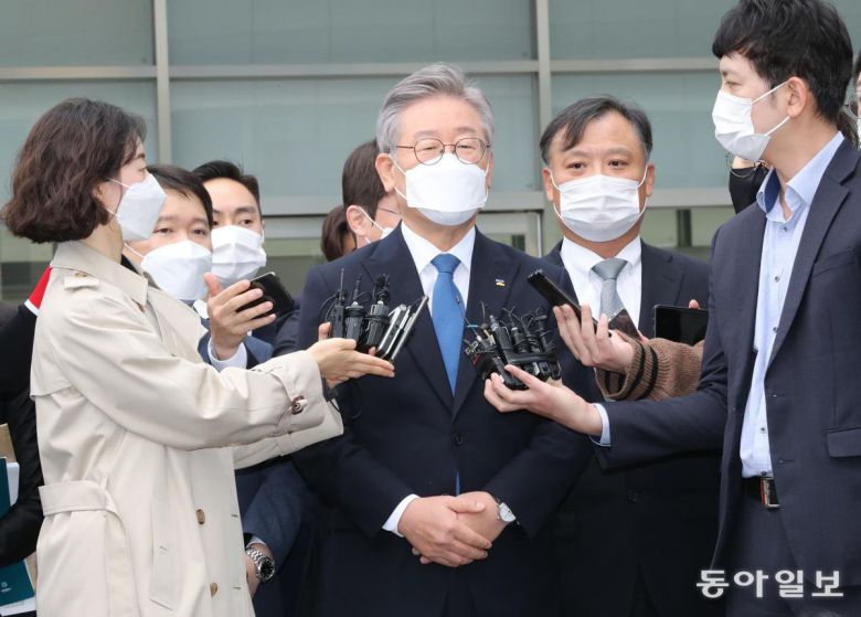 친형을 정신병원에 강제입원 시키도록 지시하고 허위사실을 공표한 혐의와 관련해 2020년 10월 진행된 수원고등법원 파기환송심에서 무죄를 선고받은 이재명 당시 경기도지사가 법원 앞에서 취재진과 일문일답을 하고 있다. 동아일보 DB