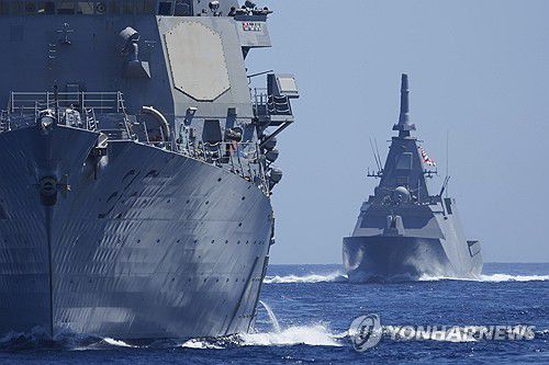 미군 함정(왼쪽)과 일본 자위대 함정 |
