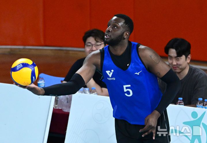 [서울=뉴시스]남자배구 트라이아웃 참석한 쉐론 베논 에반스. (사진=KOVO 제공) |
