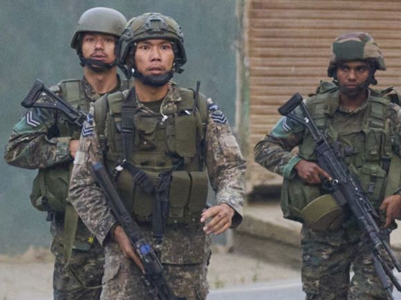7일 무장한 인도 군인들이 인도령 카슈미르 풀와마 지역에서 이동하고 있다. [사진=AP/연합뉴스] |