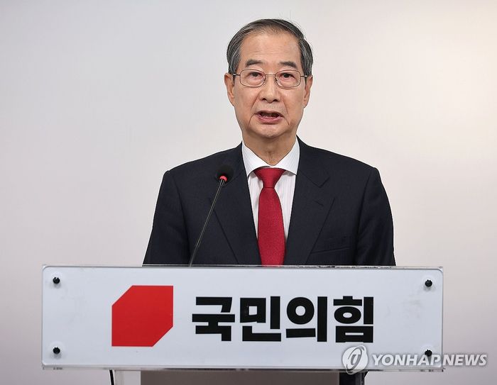 한덕수 대선 예비후보가 10일 서울 여의도 국민의힘 중앙당사에서 긴급 기자회견을 하고 있다. [사진 출처 = 연합뉴스] |
