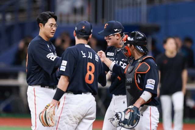 한화 선수들이 기뻐하고 있다.[사진=연합뉴스] |