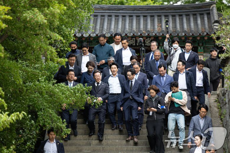 (남해=뉴스1) 이재명 기자 = 경청투어에 나선 이재명 더불어민주당 대통령 후보가 10일 오후 경남 남해군 충렬사를 찾아 이순신 장군 사당 참배를 마친 후 나오고 있다. 2025.5.10/뉴스12expulsion@news1.krCopyright ⓒ 뉴스1. All rights reserved. 무단 전재 및 재배포, AI학습 이용 금지.이 기사의 카테고리는 언론사의 분류를 따릅니다.0공유하기