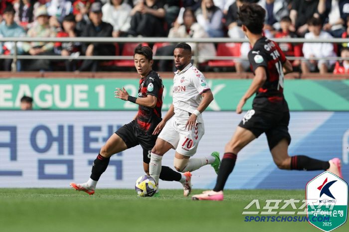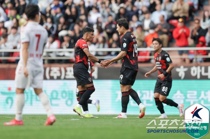 김은중 감독도 승부수를 띄웠다. 후반 25분 많이 뛴 노경호 대신 1m92 장신의 최치웅을 투입했다. 2001년생 공격수의 K리그1 데뷔전이었다. 싸박과 트윈타워가 가동됐다. 후반 26분 최치웅의 첫 헤더가 포항 골키퍼 황인재에게 잡혔다. 후반 27분 이재원의 슈팅이 또 한번 골키퍼 품을 향했다.