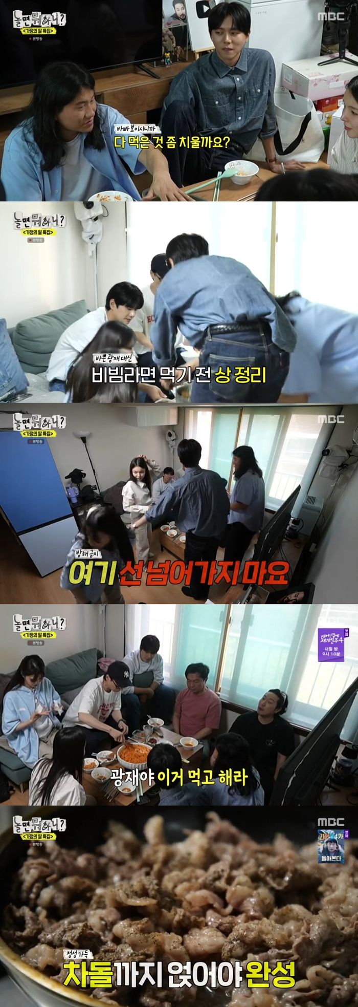 치즈 달걀말이, 김치찌개까지 순식간에 사라지자 임우일은 “비빔라면 다음에 미나리전이라고요?”라며 계속해서 박광재를 닦달했다. 차돌 비빔라면까지 끓인 박광재는 적적하지 않겠냐는 질문에 “근데 또 당분간은 혼자 있고 싶어”라고 답해 좌중을 폭소케 했다.