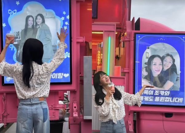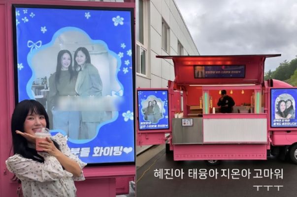 공개된 사진에는 엄정화 동생의 가족인 엄태웅, 윤혜진, 엄지온이 보낸 커피차가 담겨 있다. 커피차에는 엄정화와 함께 촬영한 가족들의 사진이 담겨 있으며 ‘금쪽이 조카와 올케도 응원합니다’라는 센스 넘치는 문구가 적혀 있다.