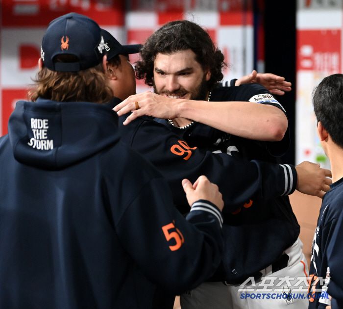 자신의 시즌 최다 110구의 공을 던지며 경기를 마친 폰세가 더그아웃으로 향하자 양상문 코치의 얼굴에 웃음꽃이 활짝 피었다. 양상문 코치는 폰세를 안아주며 멋진 투구로 경기를 마친 에이스를 격려했다.