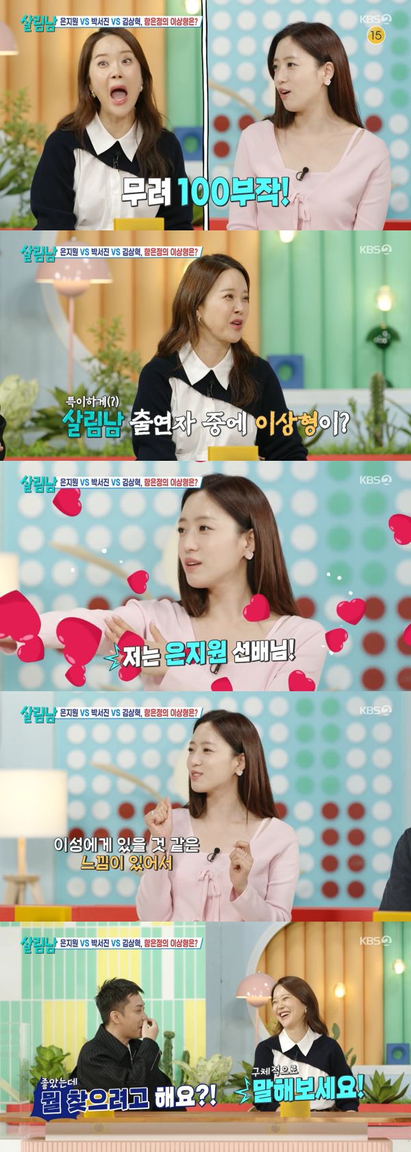 백지영은 함은정에게 "'살림남' 출연자 중에 이상형이 있다는데?"라고 물었다.