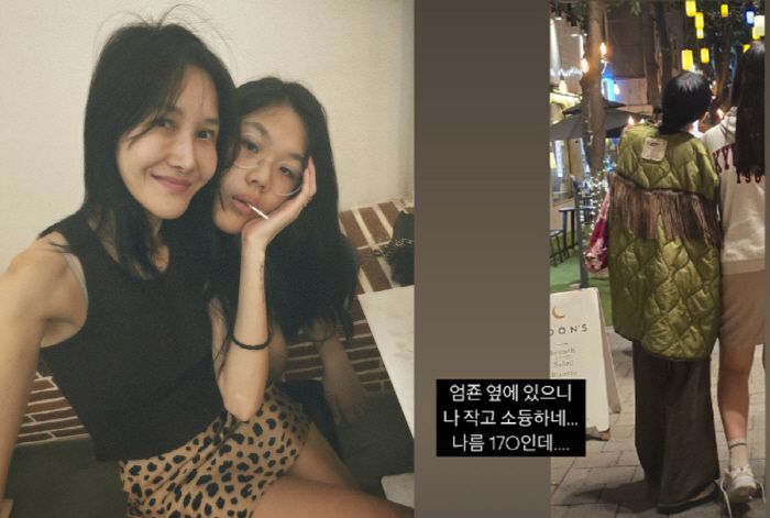 10일 윤혜진은 "엄죤(엄지온) 옆에 있으니 나 작고 소중하네. 나름 170cm인데"라며 사진을 게재했다.