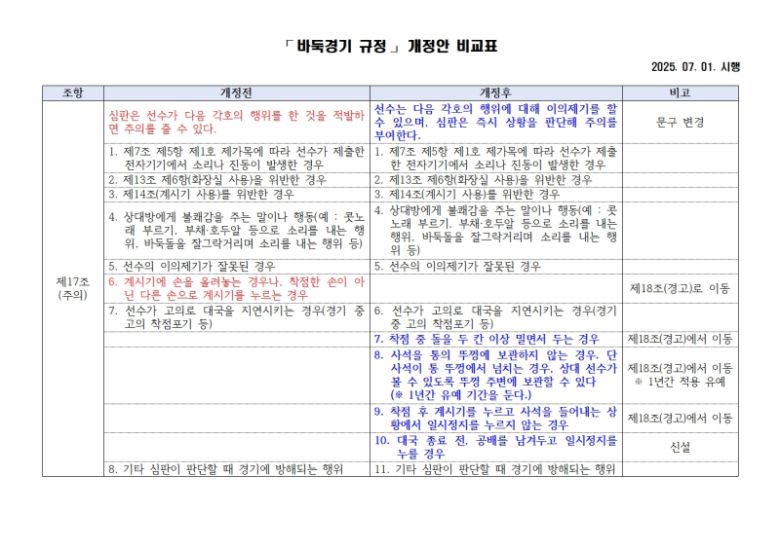 경고 시 벌점 2집에서 벌점 1집으로 패널티도 완화 조치 취해