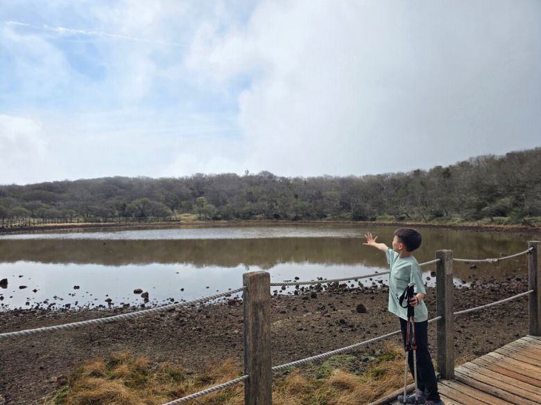 제주 사라오름에 작별 인사를 건네는 아들 서진이. 박준형 제공 |