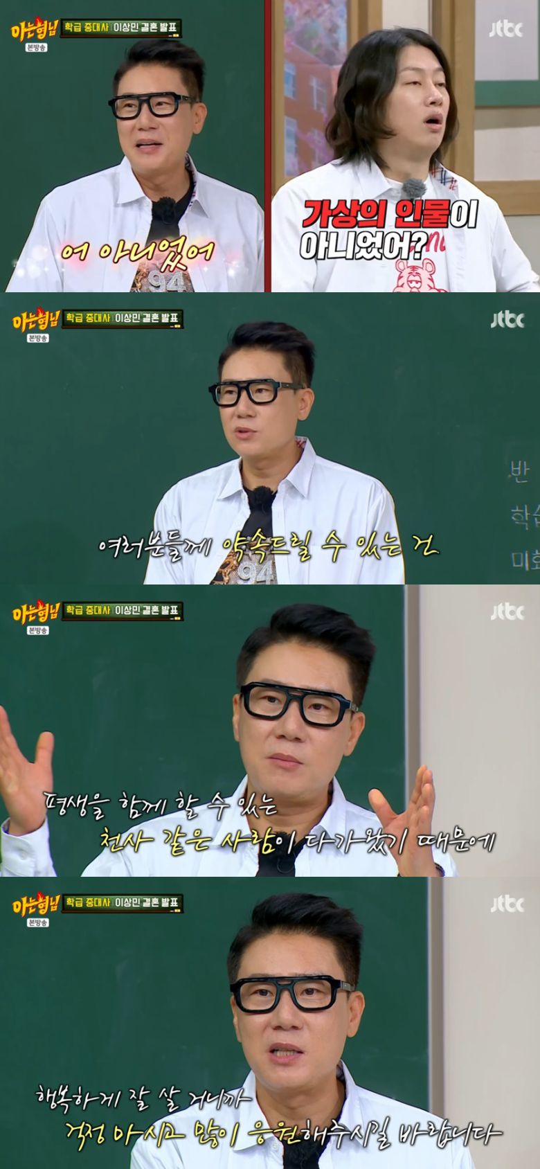 10일 방송된 JTBC '아는 형님'에서 최근 결혼 발표한 이상민이 러브 스토리를 공개했다.