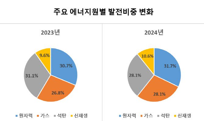 석탄 줄고 원자력·신재생 동반상승