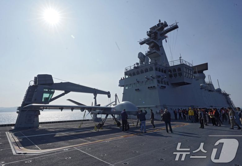 (서울=뉴스1) 정윤영 기자 = 해군이 기존의 경항공모함(경항모) 사업 대신 무인기 중심의 '미래형 함정'으로 방향을 조정했다. 전투·자폭·감시정찰용 무인항공기를 운용하는 '다목적 유·무인전력지휘함' 사업 전환을 추진하면서다.