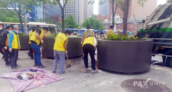 노숙인들이 기차역 광장 환경미화 작업을 진행하고 있는 모습. [사진제공=코레일][대전=팍스경제TV] 한국철도공사(코레일)는 전국 기차역에서 노숙인 104명의 자립을 지원하는 '2025년도 노숙인일자리 제공사업'을 시행한다고 오늘(11일) 밝혔습니다.
