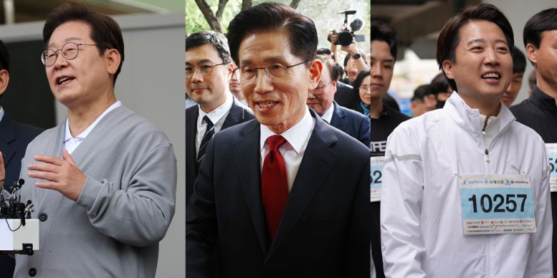 김문수 후보는 11일 중앙선거관리위원회를 후보 등록을 마쳤다. 이재명·이준석 후보는 전날(10일) 이미 대선 후보 등록을 하며 본격적인 경쟁 구도가 형성됐다. 지난 9일 진보당의 김재연 후보가 후보 등록을 하지 않겠다고 선언하면서, 원내정당으로 보면 민주진영은 이재명 후보가 사실상 단독 주자고, 보수진영은 김문수·이준석 후보가 주자인 것으로 볼 수 있다.