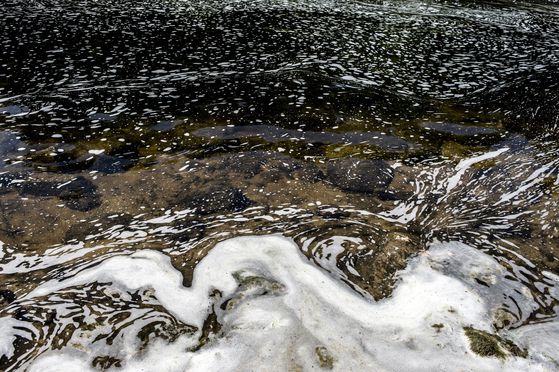 2018년 미국 미시간주의 한 댐에 과불화화합물(PFAS) 거품이 둥둥 떠 있다. AP=연합뉴스