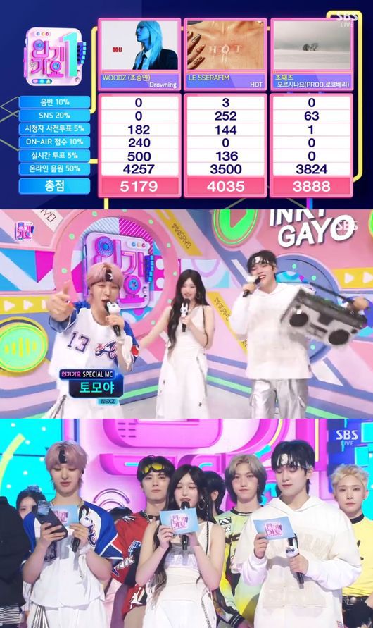 11일 오후 방송된 SBS ‘인기가요’에서는우즈(조승연), 르세라핌, 조째즈가 5월 둘째주 1위 후보로 선정된 가운데, 우즈가 1위의 영예를 안았다.