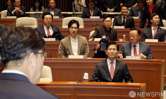 [서울=뉴스핌] 양윤모 기자 = 김문수 국민의힘 대통령선거 후보가 11일 오후 서울 여의도 국회에서 열린 의원총회에 참석 권성동 원내대표의 발언을 경청 하고 있다. 2025.05.11 yym58@newspim.com |