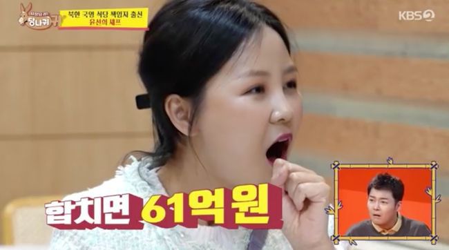 그는 "이걸 11년동안 장사하며 돈을 벌다 보니 내가 가게 2개를 샀다. 순댓국 가게 2개를 한다"며 "35평이 17억이었다. 그리고 송도에 52평이 44억"이라고 총 61억 건물을 매입했다고 밝혀 모두를 놀라게 했다. 이를 들은 김숙은 "윤셰프님이 보스로 오셔야겠다"고 말했고, 이순실은 "나도 산 샀다"며 "저사람은 저거만 잘하지 아무것도 못한다. 나는 떡도 잘하고 김치도 잘한다"고 어필했다.
