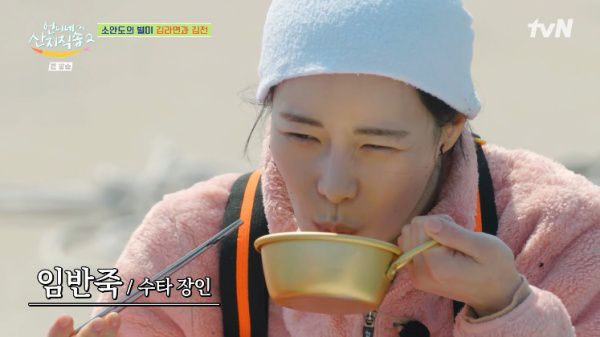 일이 끝난 후 마을 어르신은 김전과 김라면, 김밥 등을 준비해 이들에게 내어줬다. 고된 노동을 한 멤버들은 "너무 맛있다" "고소하고 향긋하다" 등의 감탄사를 내뱉으며 '폭풍 먹방'을 선보였다.