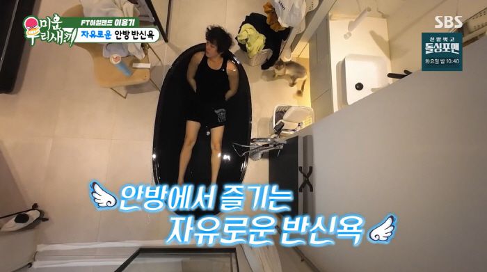 모벤져스의 걱정과 달리 안방에서 자유롭게 반신욕을 즐기는 이홍기의 모습은 편안해 보였다.