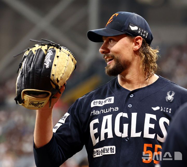 [서울=뉴시스] 박주성 기자 = 11일 오후 서울 구로구 고척스카이돔에서 열린 프로야구 2025 KBO리그 한화 이글스 대 키움 히어로즈의 경기, 3회말까지 무실점으로 막은 한화 선발 와이스가 덕아웃으로 들어오며 팀 동료들과 인사를 나누고 있다. 2025.05.11. park7691@newsis.com |