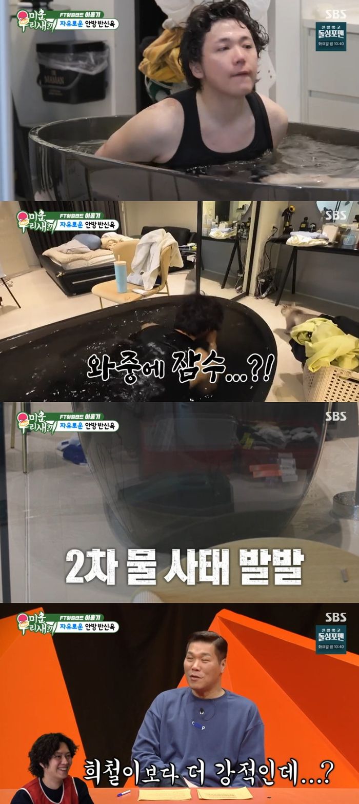 욕조에 물이 다 차오르자 이홍기는 반신욕을 즐겼고 그새 안방은 물난리가 펼쳐졌다.