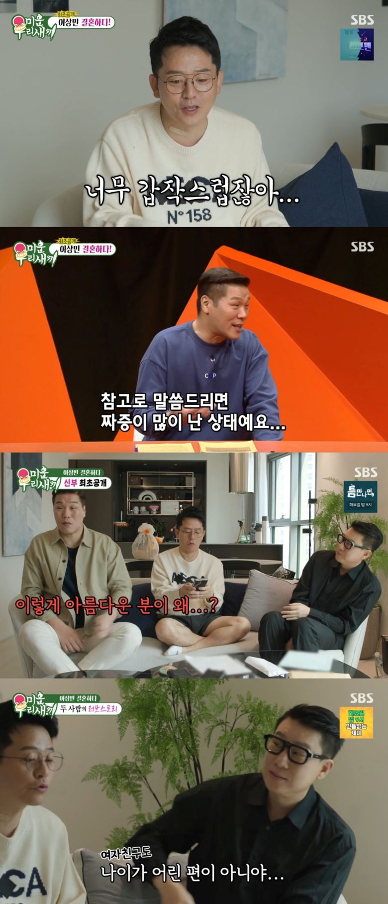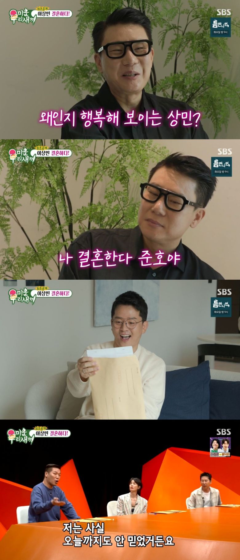 11일 방송된 SBS '미운 우리 새끼'(이하 '미우새')에는 이상민이 김준호를 만나 직접 결혼을 전하는 장면이 전파를 탔다.