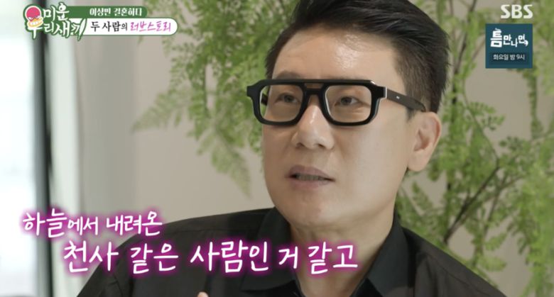 이상민은 "빠르게 변화가 오면 나도 이상하다. 하늘에서 내려온 천사 같은 사람인 것 같다. 방송 외적으로 하는 일이 있는데 그 일로 인해 작년에 알게 됐다"라고 말했다. 이어 "연애는 3개월 정도 했다. 10살 차이가 난다. 그 친구도 나이가 어린 편이 아니다. 일반 회사원이다. 작년에 알게 됐고 처음에는 아예 관심이 없었는데 올해 1월 공황장애 때문에 병원에 방문했을 때 사실은 심각한 상태였다. 10년 간 약을 먹었는데 약을 더 늘려야만 하는 상황이다보니 완전히 번 아웃이 찾아왔었다. 누군가한테 이야기를 하고 싶었는데 가까운 사람들한테도 못하겠고 전화번호를 보다가 그 친구의 이름이 있길래 나도 모르게 용기를 내서 '혹시 시간 괜찮으세요?'라고 한 것이 시작이 됐다"라고 털어놓았다.