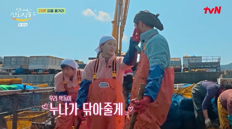 건설 현장을 방불케 하는 김 조업 현장에 투입된 사 남매는 김 28톤 하역 작업을 시작했다. 열심히 김을 퍼내던 이재욱은 옆에서 함께 작업하고 있던 임지연에게 "나 (얼굴에) 김 많이 묻었냐"고 물었고, 임지연은 씩 웃더니 "누나가 닦아줄게"며 이재욱 얼굴에 김을 더 묻혔다.