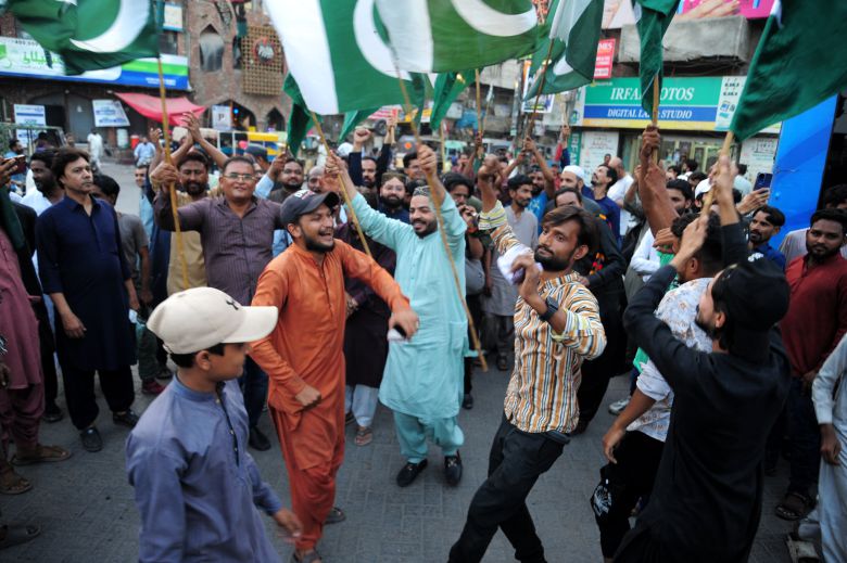 파키스탄 국민들이 10일 인도와의 휴전 소식을 자축하고 있다. /EPA 연합뉴스 |