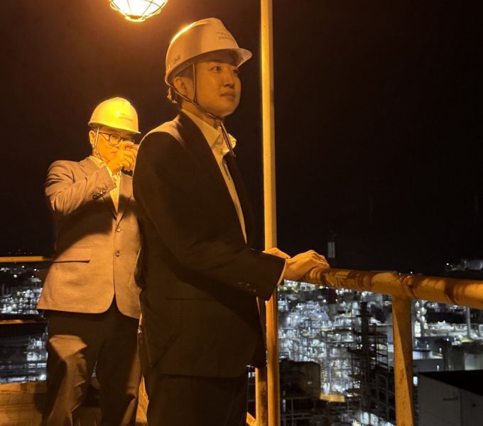 이준석 개혁신당 대선 후보가 12일 여수 산단을 지켜보는 모습. /사진=정경훈 기자. |