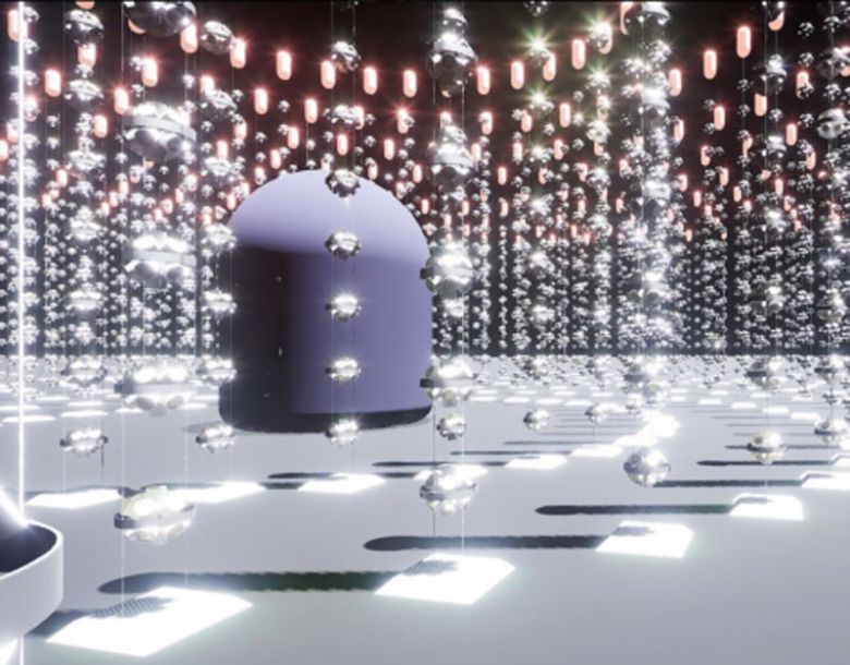 동해 심해 중성미자 검출기 상상도. 돔형 구조물은 일본 양성자가속기연구소(J-PARC)에서 날아온 중성미자 빔을 검출하고, 주변으로 늘어선 해저 검출기들은 우주에서 날아온 중성미자를 잡아낸다. 유종희 서울대 교수 제공 |