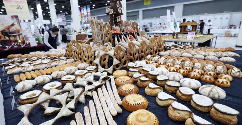11일 서울 서초구 aT센터에서 열린 ‘제22회 서울국제푸드앤테이블웨어박람회&월드푸드올림픽’ 베이커리 부문 참가자들이 만든 이색적인 모양의 출품작이 전시돼 있다.