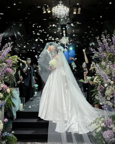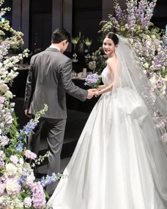 공개된 사진에는 순백의 드레스를 입고 면사포를 쓴 채 보라색 꽃을 들고 있는 새 신부 남보라의 모습이 담겨 있어 눈길을 끈다.
