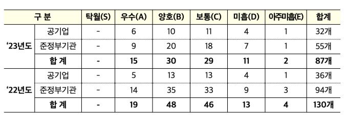 2023년도 공공기관 경영평가 결과 [자료=기획재정부] 2024.06.19 biggerthanseoul@newspim.com