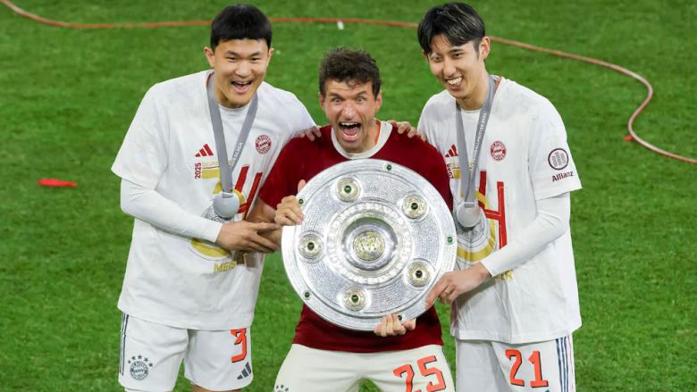 전통대로라면, 주장인 마누엘 노이어가 트로피를 들러올려야 했지만 그는 트로피를 전달받아 뮐러에게 넘겼다. 2008년부터 1군에서 활약해온 클럽의 상징이자 아이콘인 뮐러는 팬들의 기립 박수 속에 트로피를 머리 위로 치켜들었고, 금빛 폭죽이 터지며 알리안츠 아레나를 축제 분위기로 물들였다.