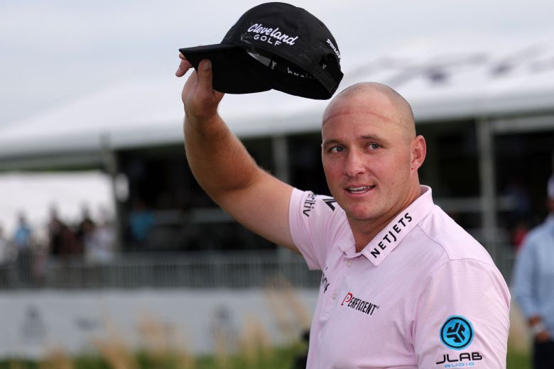제프 슈트라카가 5월12일 PGA투어 2025 트루이스트 챔피언십에서 우승한 뒤 모자를 벗고 인사하고 있다. /AFP 연합뉴스