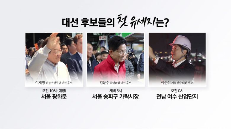 김문수 후보랑 이준석 후보는 이미 새벽부터 일정을 시작했더라고요. 각 후보별로 첫 유세 장소가 의미가 있는 것 같은데 어떻게 보고 계세요?