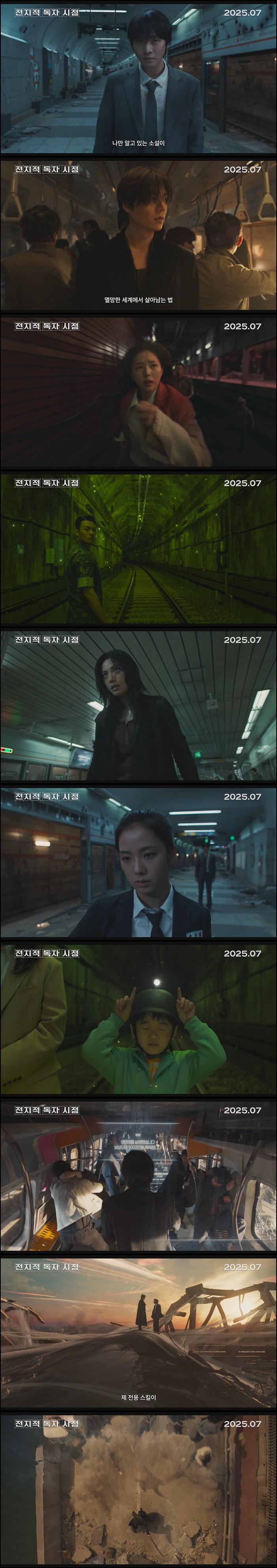'전지적 독자 시점'은 10년 이상 연재된 소설이 완결된 날 소설 속 세계가 현실이 되어 버리고, 유일한 독자가 소설의 주인공, 그리고 동료들과 함께 멸망한 세계에서 살아남기 위한 고군분투를 다룬 작품이다. 안효섭, 이민호, 채수빈, 신승호, 나나, 지수 등이 출연했고 '더 테러 라이브' 'PMC: 더 벙커'의 김병우 감독이 메가폰을 잡았다. 오는 7월 개봉 예정.