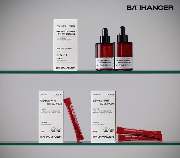 바이오핸서(BIOHANCER)가 비타민 B12를 핵심 성분으로 바르는 ‘인플레임드 비타민 B12 353 앰플’과 마시는 ‘인플레임드 비타민 B12 353 부스터’ 2종을 12일 출시했다.