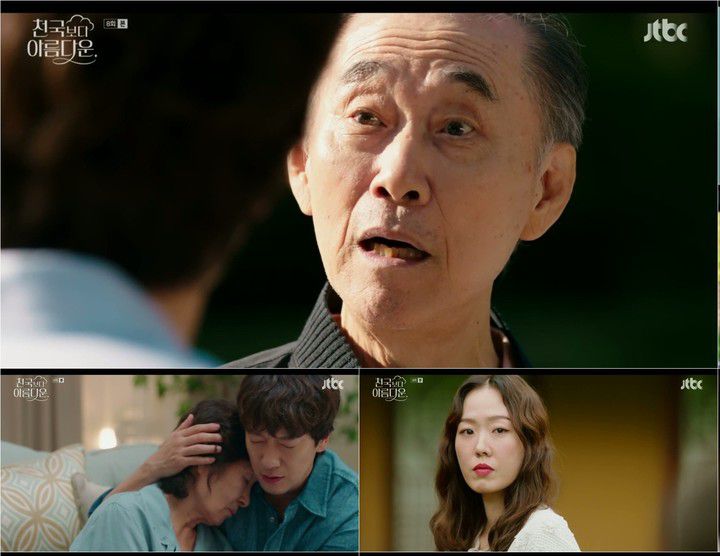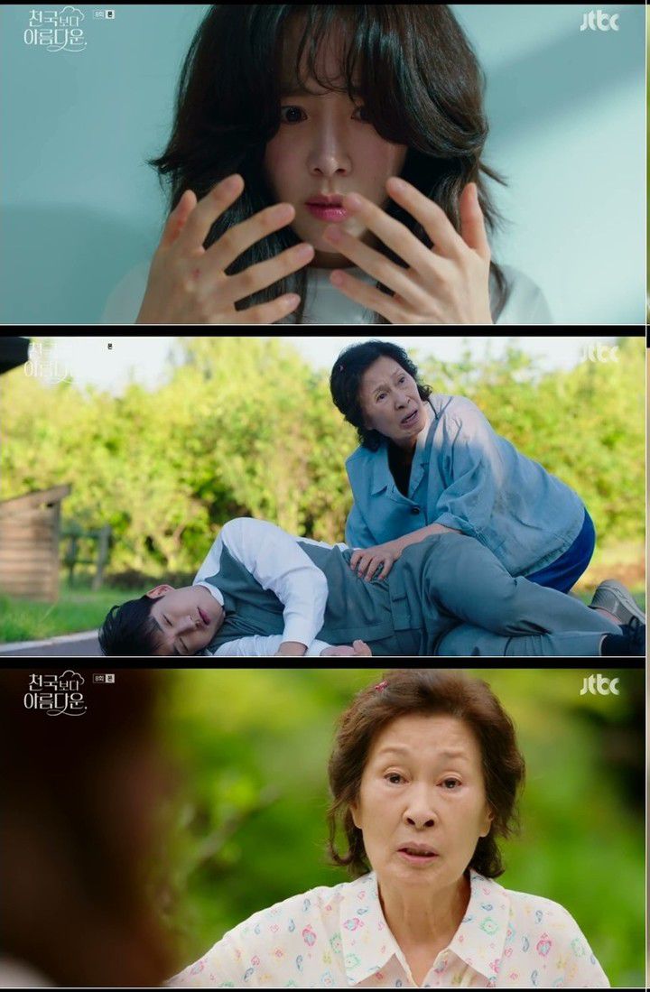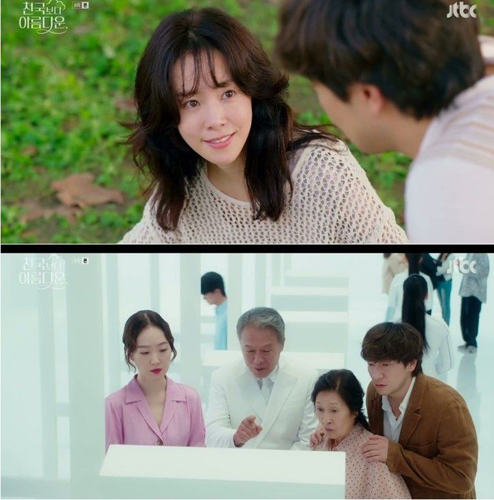 지난 12일 방송된 JTBC 토일드라마 '천국보다 아름다운' 8회에서는 시어머니 박종귀(주민경)의 환생길을 배웅하는 이해숙(김혜자), 고낙준(손석구) 부부의 모습이 그려졌다.