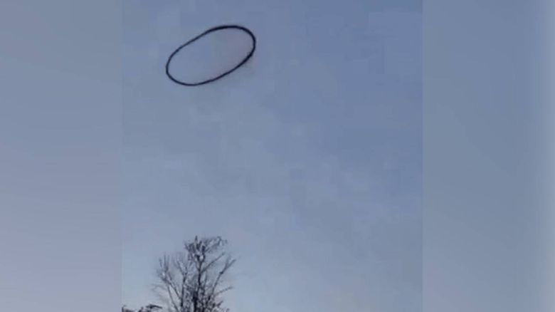 공개된 영상에는 하늘에 떠 있는 선명한 검은색 고리와 그 주변을 따라 소용돌이치는 연기처럼 보이는 장면이 담겼다. 시간이 지나자 고리는 점차 흐려지며 사라졌다.