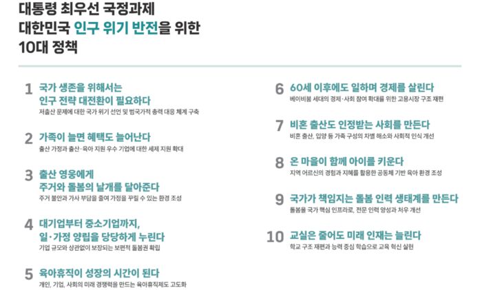 한반도미래인구연구원 10대 정책 제언 |